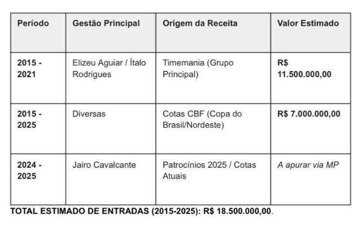 Entre as irregularidades apontadas estão a marca “Galo Carijó” registrada em nome de terceiros, contratos de patrocínio suspeitos e recursos de premiações esportivas que não teriam sido destinados ao abatimento das dívidas do clube. O documento também alerta para possíveis problemas na Fundação River e na alienação de salas comerciais no Manhattan River Center.