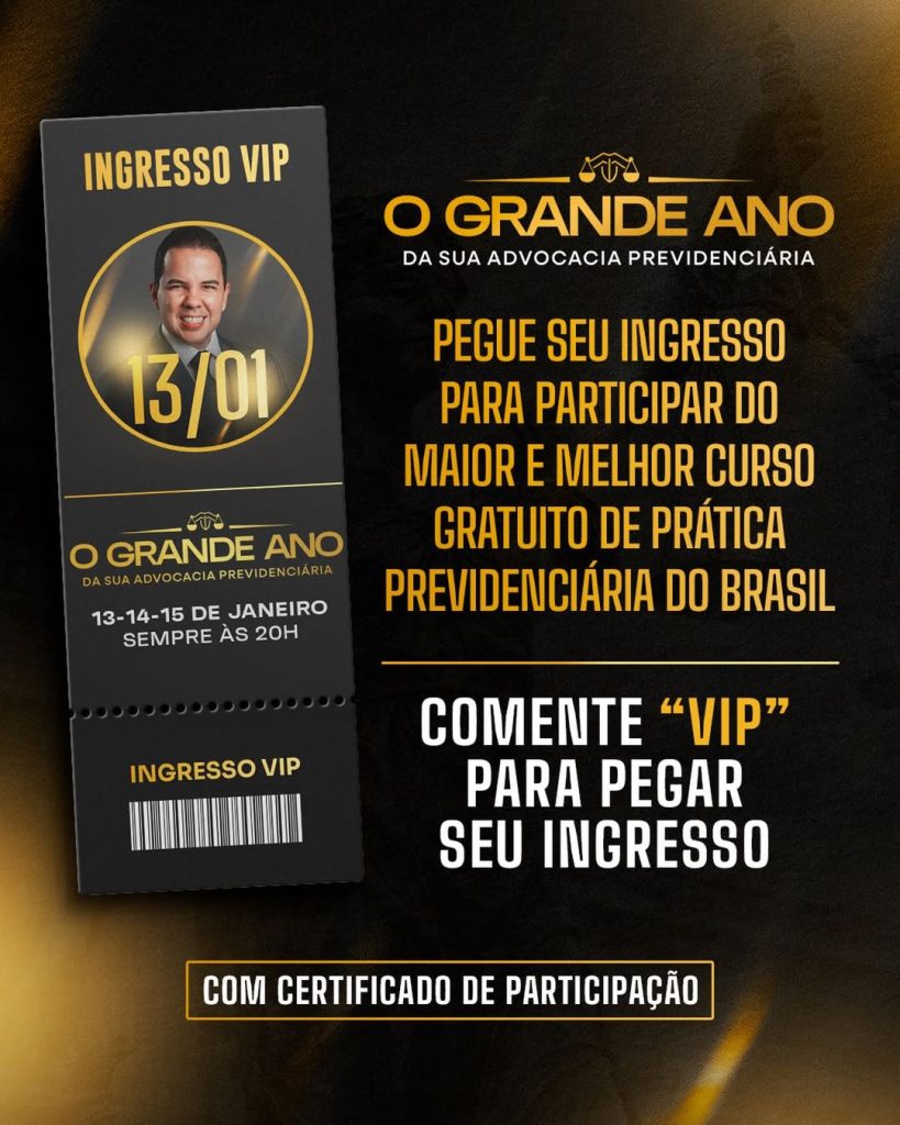 O advogado e professor Victor Carvalho, especialista em Direito Previdenciário, promove um curso gratuito nos dias 13, 14 e 15 de janeiro, voltado a advogados e bacharéis que atuam ou desejam ingressar na área previdenciária. A proposta é apresentar conteúdos atualizados e estratégias práticas para ampliar concessões de benefícios e fortalecer a atuação profissional no setor.