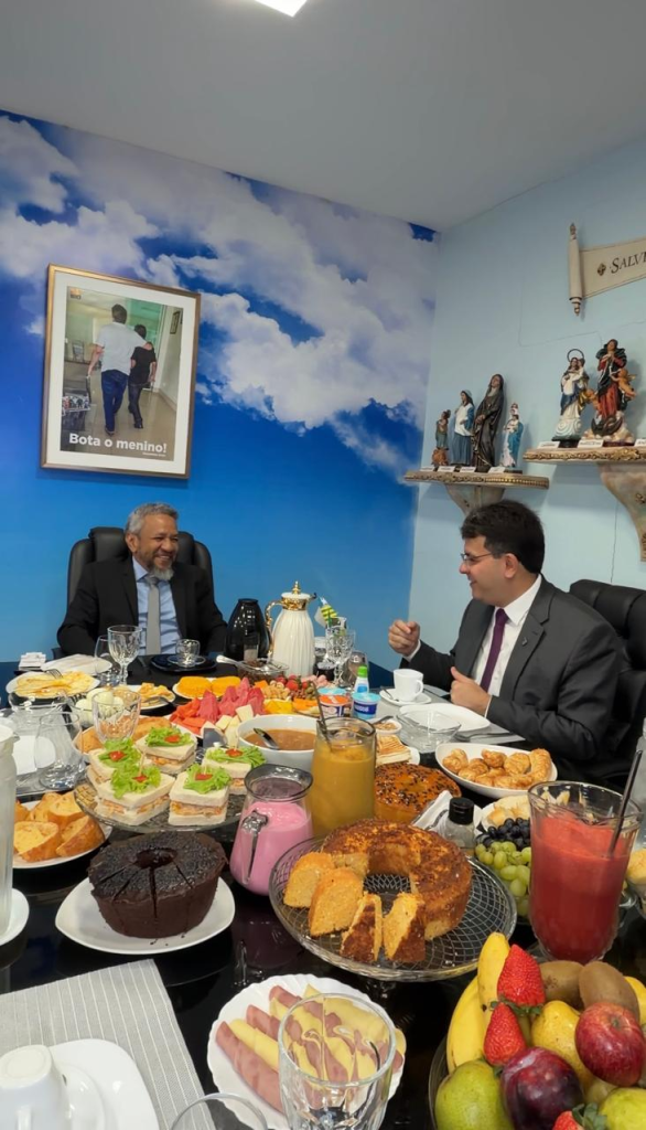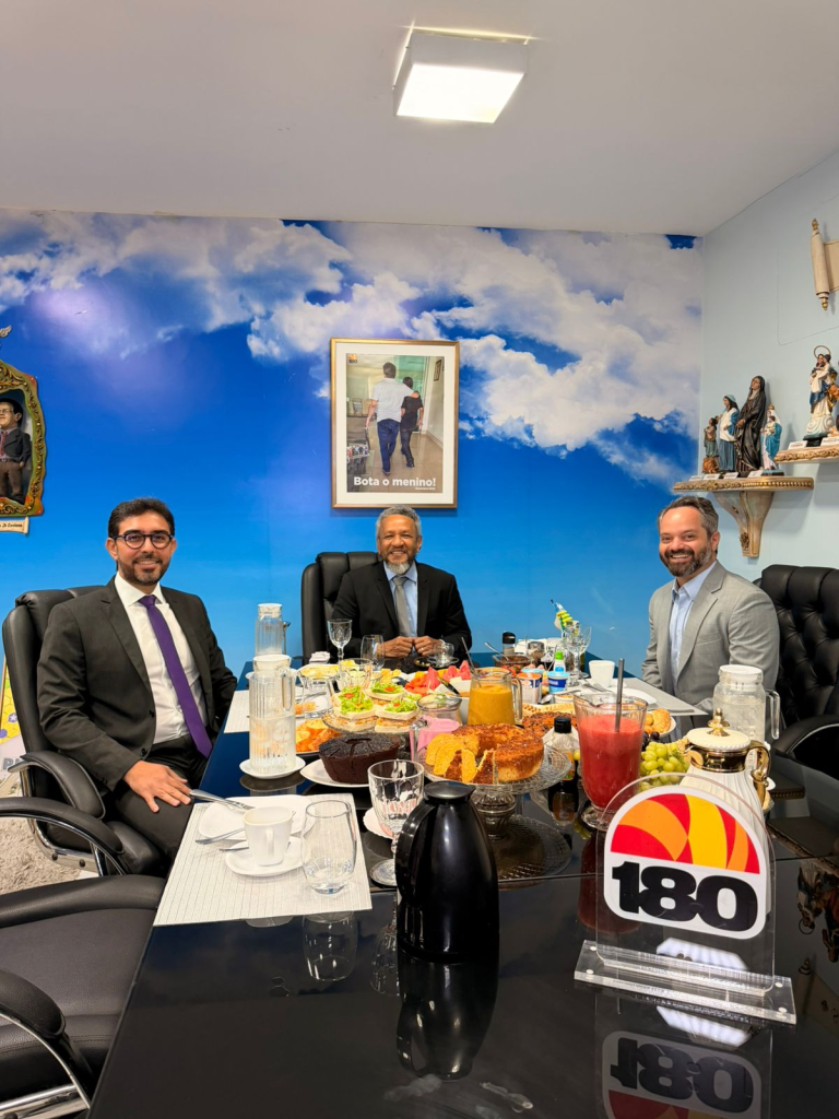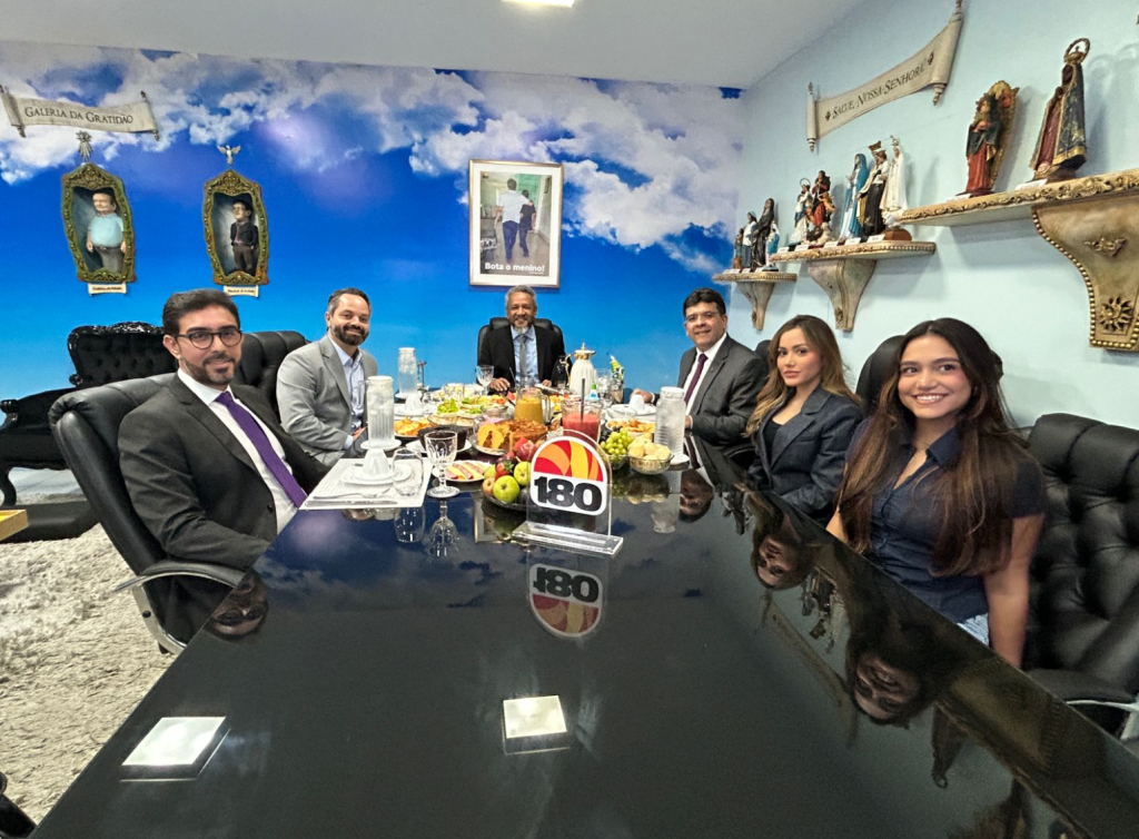 O diretor-geral do Portal 180graus, Helder Eugênio, recebeu o governador do Piauí, Rafael Fonteles, acompanhado do secretário de Comunicação, Marcelo Nolleto, e do secretário de Gabinete, Pedro Rocha, na manhã desta sexta-feira (22/12), para o tradicional Café 180, na sede do Grupo Eugênio.